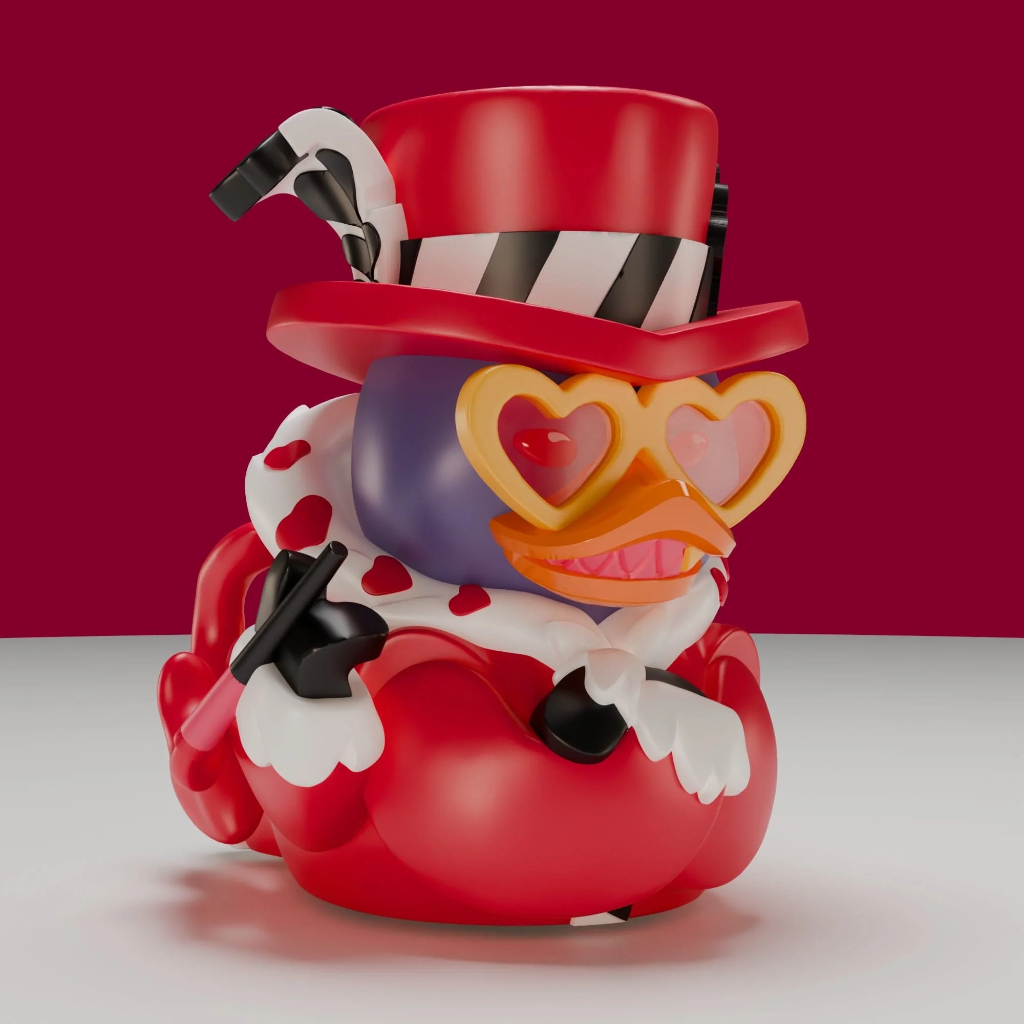 Dressed in crimson class and framed by hearts galore, his boxed Edition brings a commanding flair to your collection.
